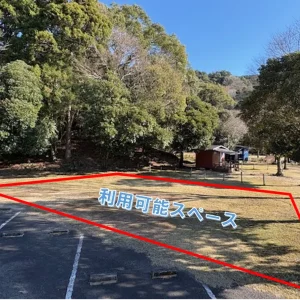 芝生広場をロープで区画内であれば自由に使える特大サイズのフリーサイトです。